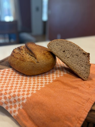 A classic bread, now in sourdough! My personal favorite, a tasty but not overpowering loaf that's perfect toasted with a slice of butter to melt right into it.